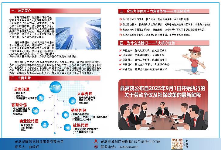 青島瑞騰信息科技服務(wù)有限公司是一家綜合性專業(yè)從事人力資源服務(wù)的機(jī)構(gòu)。公司堅持以“以人為本,誠實守信,合作共贏”的經(jīng)營理念,以完善的服務(wù)體系、專業(yè)的服務(wù)團(tuán)隊、高效的信息系統(tǒng)為企業(yè)提供以勞務(wù)派遣為核心,集技術(shù)服務(wù)外包、代理招聘、員工關(guān)系、人力資源管理咨詢、人事外包、項目外包等優(yōu)質(zhì)服務(wù)。