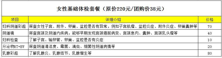 今日團(tuán)購:女性基礎(chǔ)體檢套餐